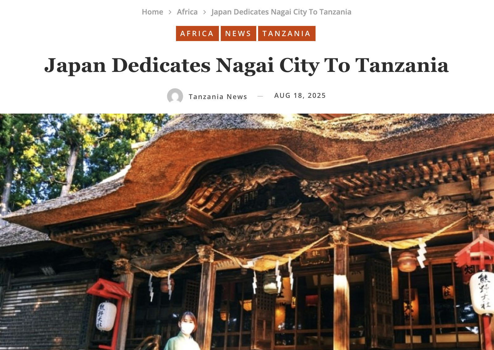 タンザニアの現地メディアの1つ「THE TANZANIA TIMES」が、自社の公式ページに『日本が長井市をタンザニアに捧げた』との記事を掲載しました。